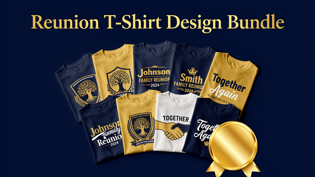 Ready-to-print t-shirt design files for your reunion. Includes 10 bold family reunion graphics in multiple formats — take them to any local printer.